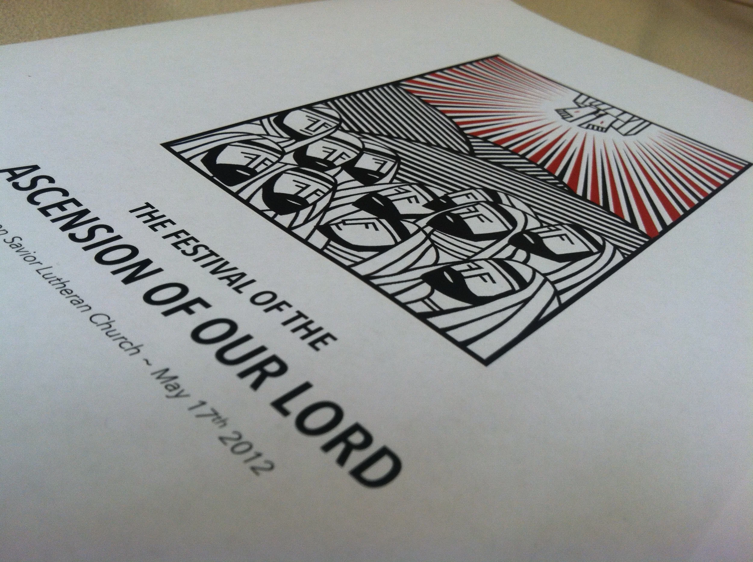 Artwork used on the cover of a worship folder. The vector file (EPS) of the art was used to add the red coloring in Adobe Illustrator.